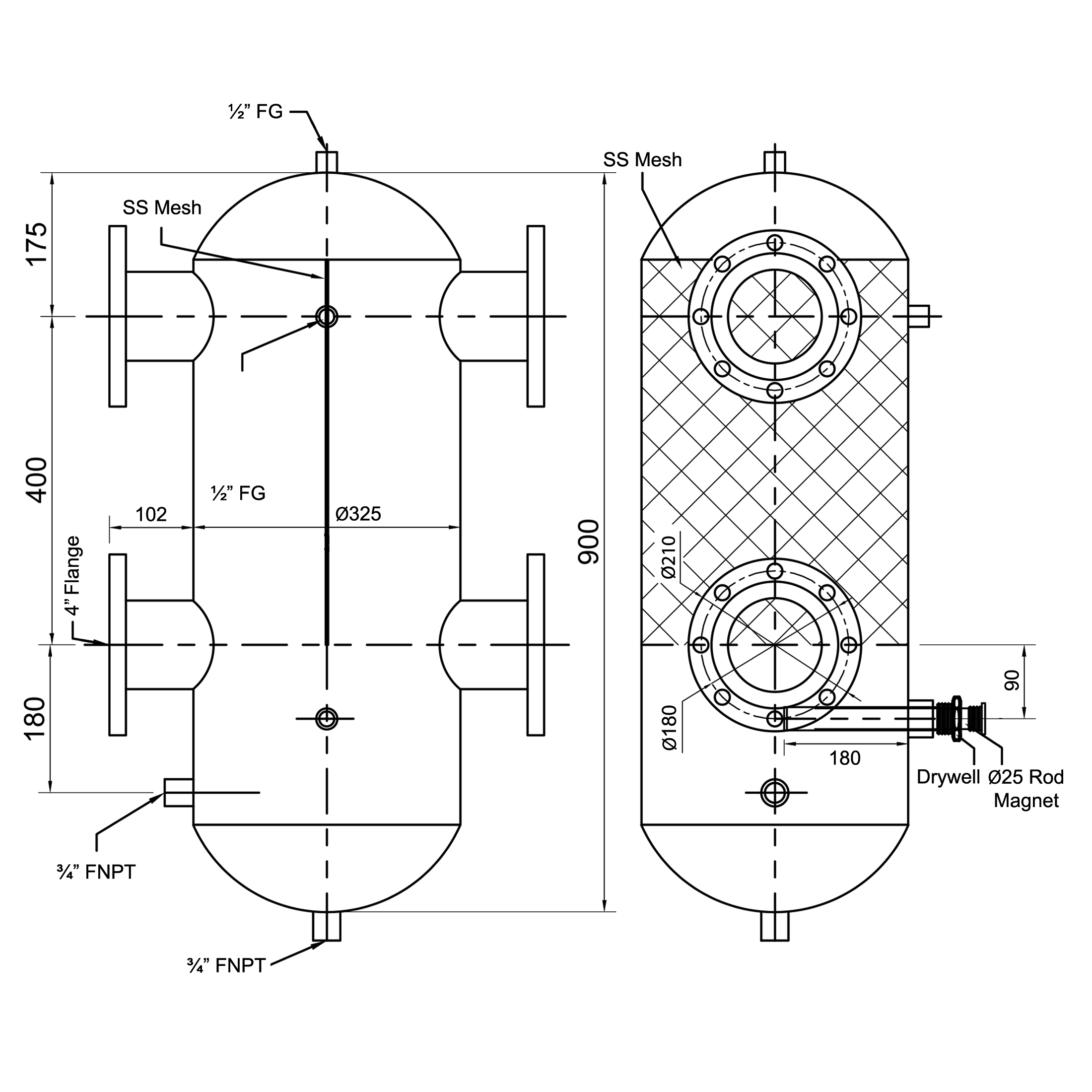Rhella 4″ 304 Stainless Steel Hydraulic Separator with Dirt Magnet